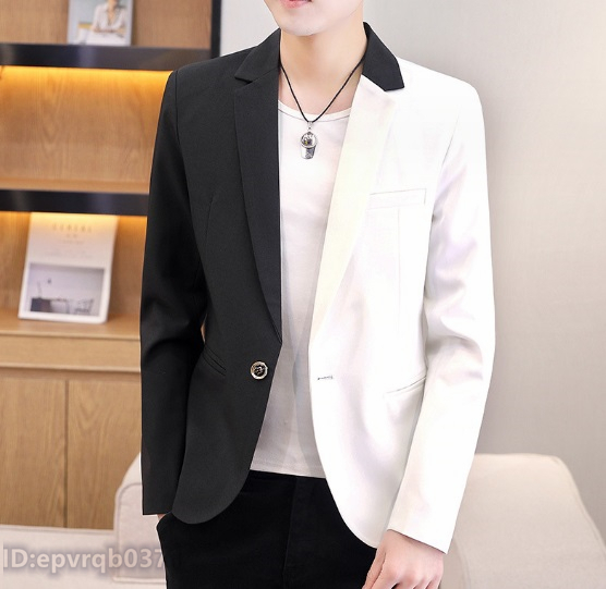 > ブレザー 新入荷☆テーラードジャケット 折り襟 スリム 切替配色 メンズ カジュアルスーツ 紳士 トップス サイズ選択可 白/XL