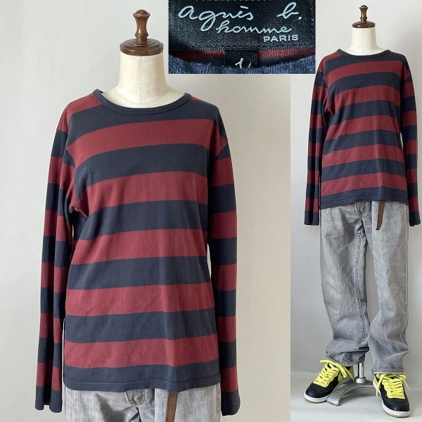 - 並品★国内正規品 名作 定価15,400円程 日本製 agnes b.homme 4366J019 H21 (J019) アニエスベー オム 太ボーダー ロンT Tシャツ 1 長袖