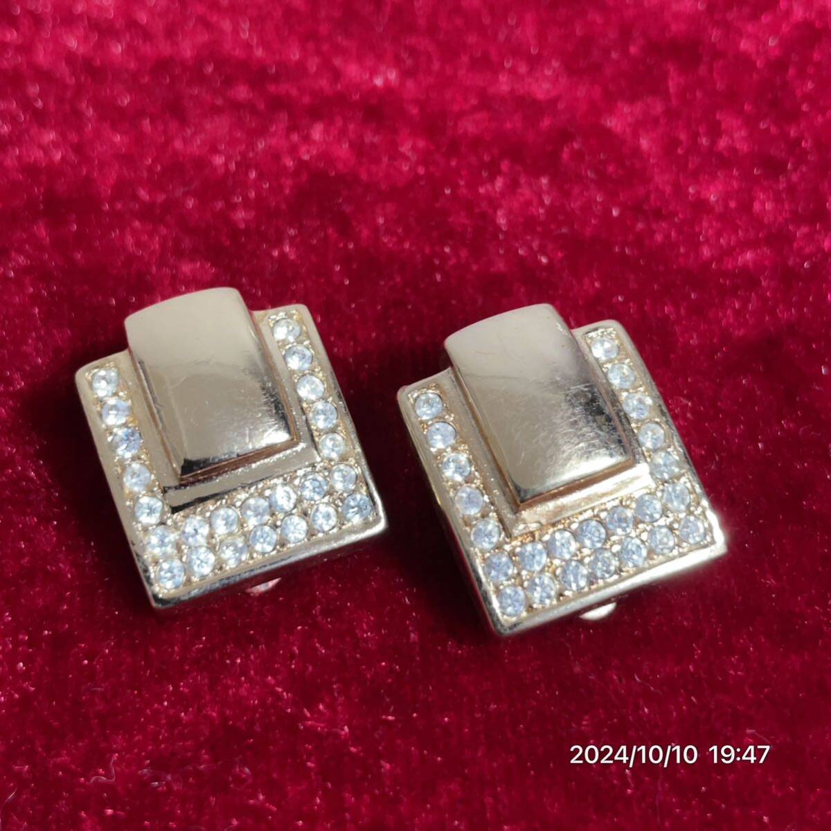 > Dior クリスチャン ディオール ラインストーン スクエア ゴールドカラー イヤリング アクセサリー 装飾品