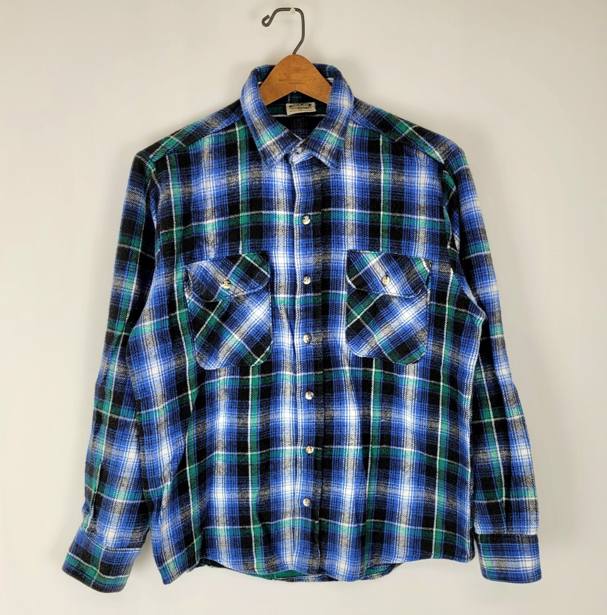> 美品 美柄 ~90s USA製 FIVEBROTHER ヘビーネルシャツ Mサイズ 黒 青 緑 白 ~90年代 アメリカ製 ビンテージ フランネルシャツ