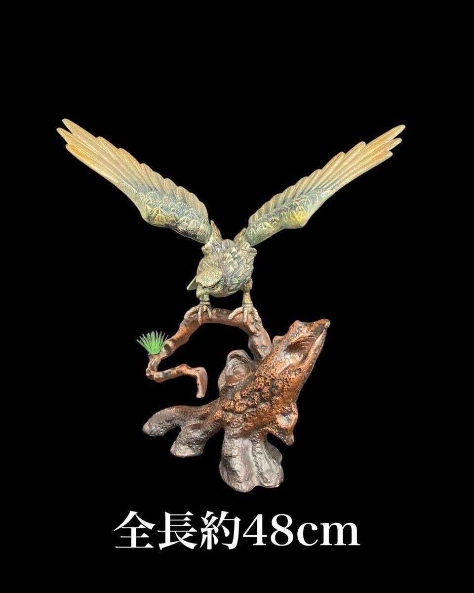 - 堀) 金属製 鷹の置物 金属工芸 インテリア オブジェ 縁起物 アンティーク ヴィンテージ 和風 鳥の置き物 置物 中古品 (241015)