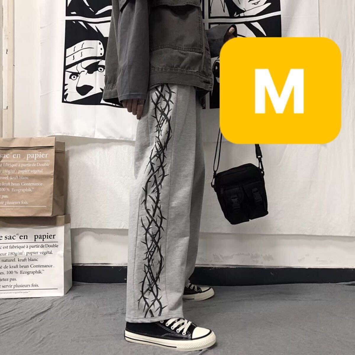 - ワイドパンツ 薔薇柄 ストリート ボトムス ユニセックス トレンド ストリート メンズ レディース バラ グレー M