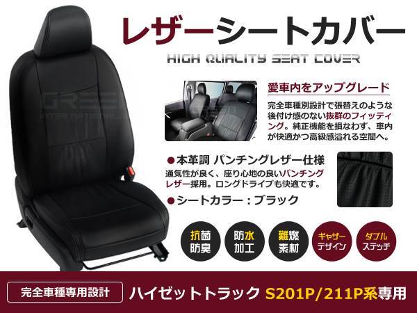 > ハイゼットトラック S201P S211P 2人 シートカバー ブラック パンチング 一台分 フルセット H23/12~H26/8 内装 PVC レザー 座席