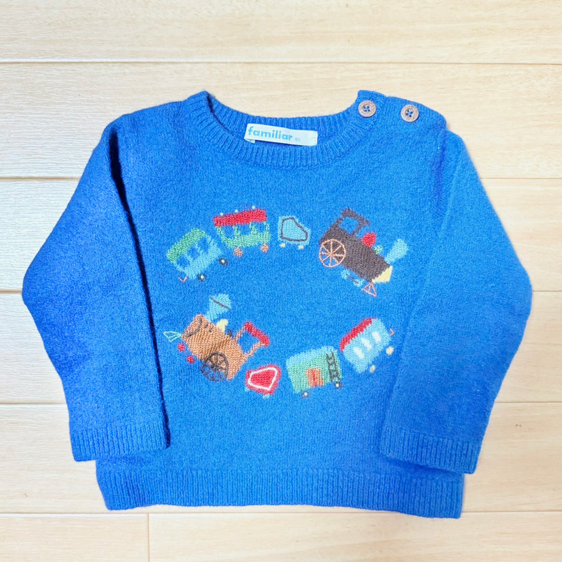> familiar ファミリア ベビー セーター ニット ウール ブルー 機関車 80cm