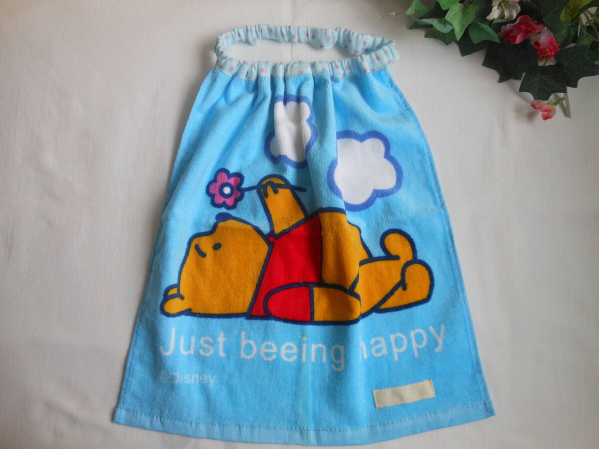 - お食事タオルエプロン プーさん ブルー水色 ①*ダブルガーゼ ネーム付き 入園 バザー プチギフト