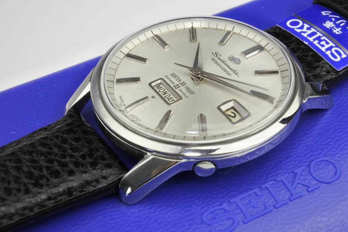 - ☆存数少ない☆1963年製 SEIKO 初曜日機能自動巻 セイコーマチック・ウィークデーター 33石 金色機械 紳士腕時計 国産名機逸品