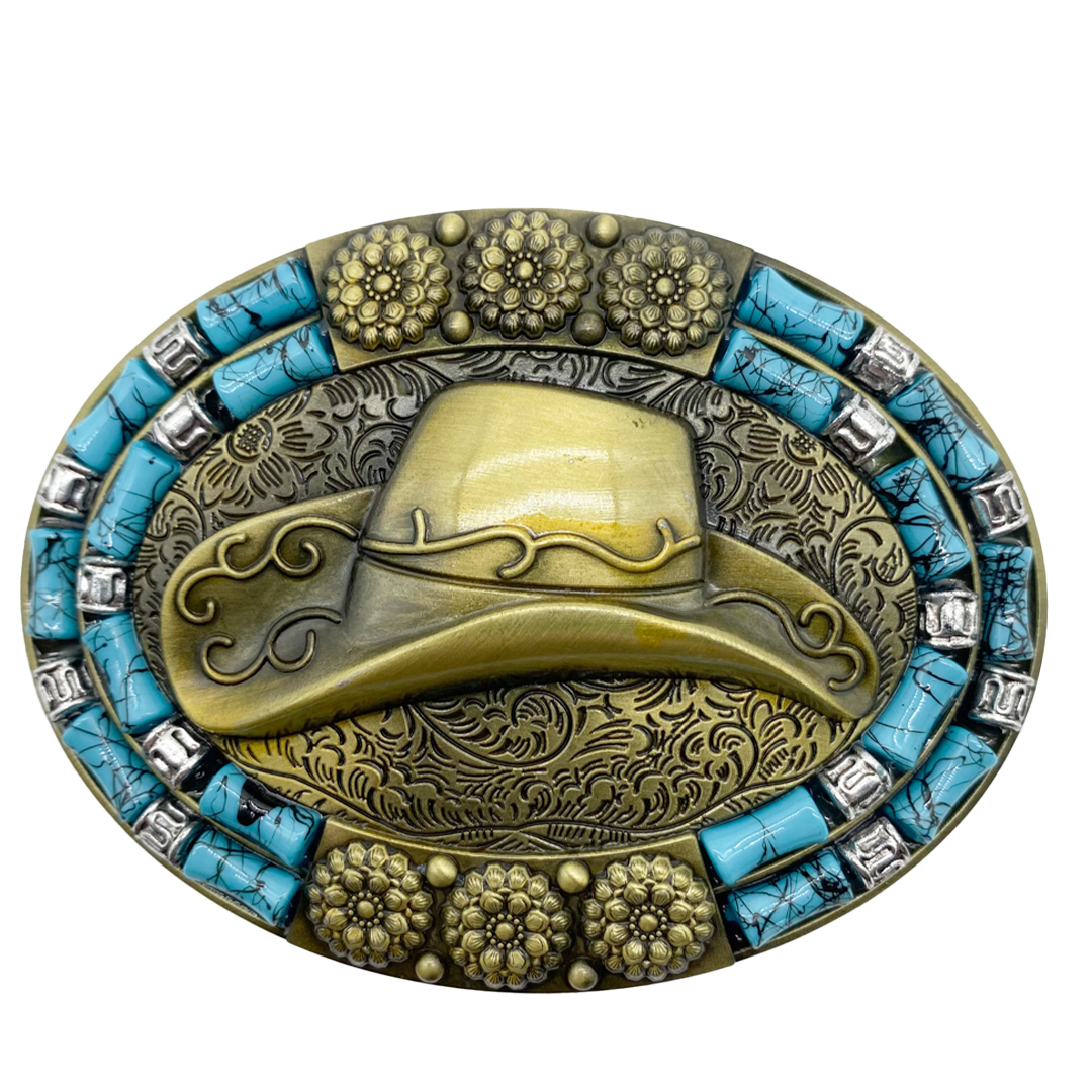 > ■新品■ 送料無料 匿名配送 ベルトバックル のみ メンズ レディース カジュアル ヴィンテージ ターコイズ系 ターコイズ帽子 金ゴールド