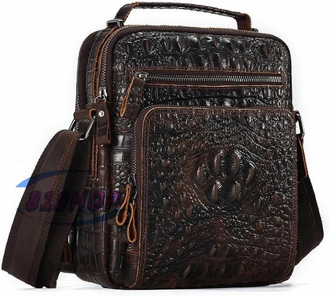 - 「81SHOP」 クロコダイル型押し牛革 ショルダーバッグ メンズ 3way 斜め掛け胸バッグ 手提げバッグ 手持げバッグ セカンドバッグ 厚手本革