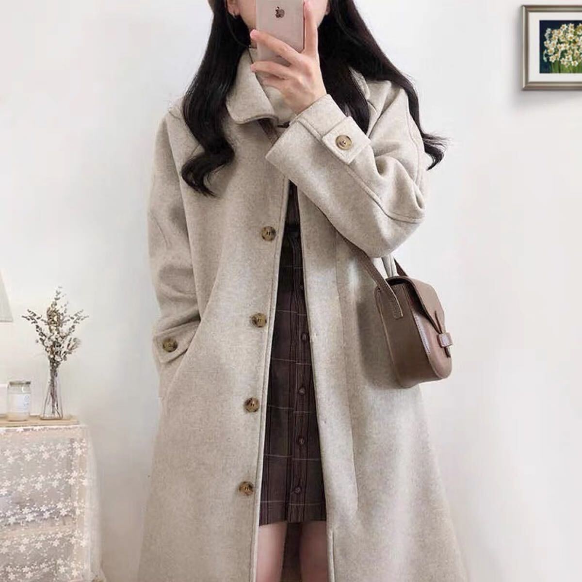 > ロングコート ラシャコート チェスターコート チェックコート レディースコート レディースアウター オフィスカジュアル SLCC072(2色S-2XL)
