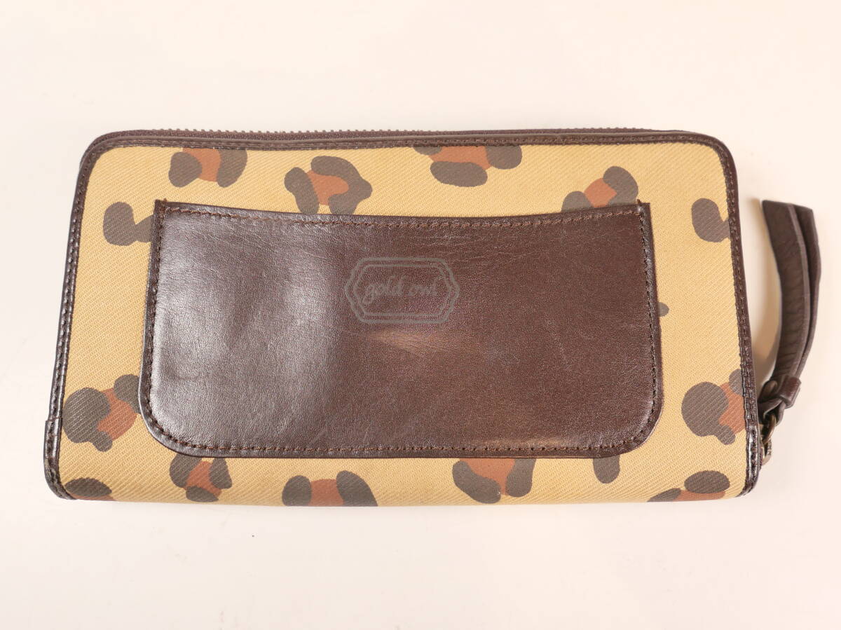 - ♪中古★GOLD OWL レザー×キャンバス ラウンドジップ がま口 財布