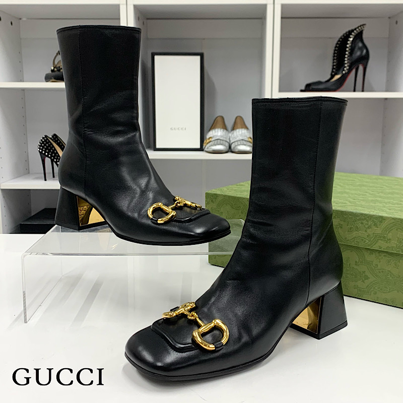 - M10831 グッチ ホースビット レザー ショートブーツ ブラック