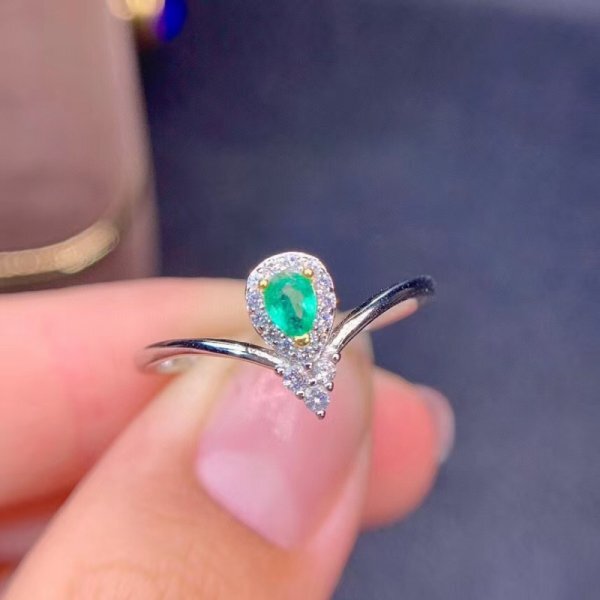 - 【証明書付き】 ナチュラルエメラルド925シルバーリング、米国サイズ6.5(日本の13号相当)、最初の入札者様は開始価格で購入可能 aa_