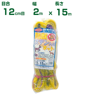 > ダイオ化成 防獣ネット 12cm菱目 黄 防獣ステン入ネット 2.0m×15m 農業資材 園芸用品 アニマルネット 防獣網 猪 イノシシ ガーデニング