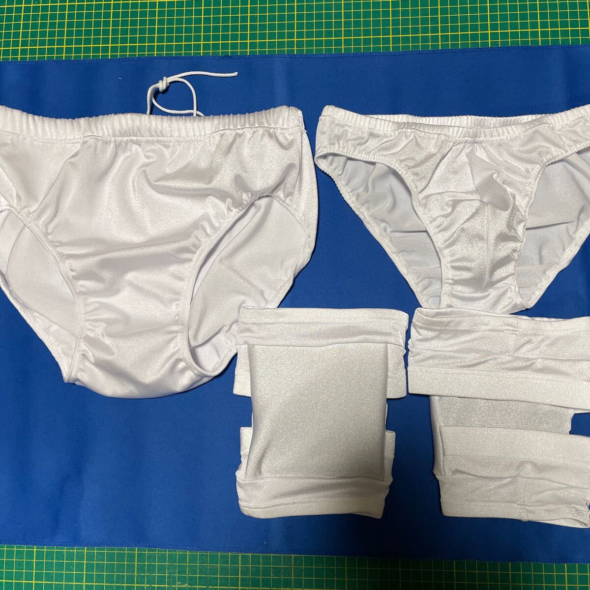 - XL白色3点セット プロレス試合用3点セット ショートタイツ、アンダーパンツ、ニーパット 水着