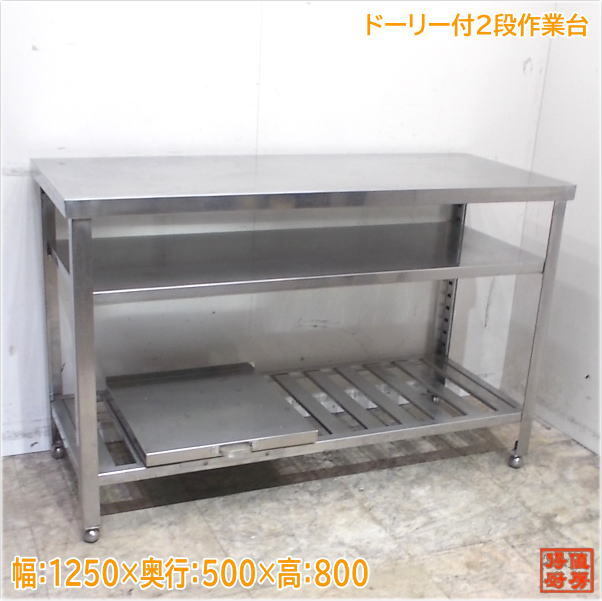 - ステンレス ドーリー付2段作業台 1250×500×800 中古厨房/24K0717Z