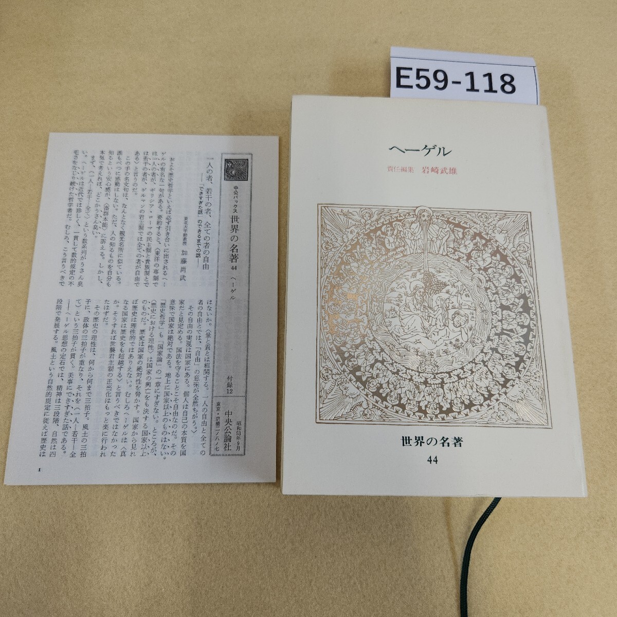 - E59-118 ヘーゲル 世界の名著44 GREAT BOOKS OF THE WORLD 中央公論社 月報有 ヤケ有 天地小口に傷有