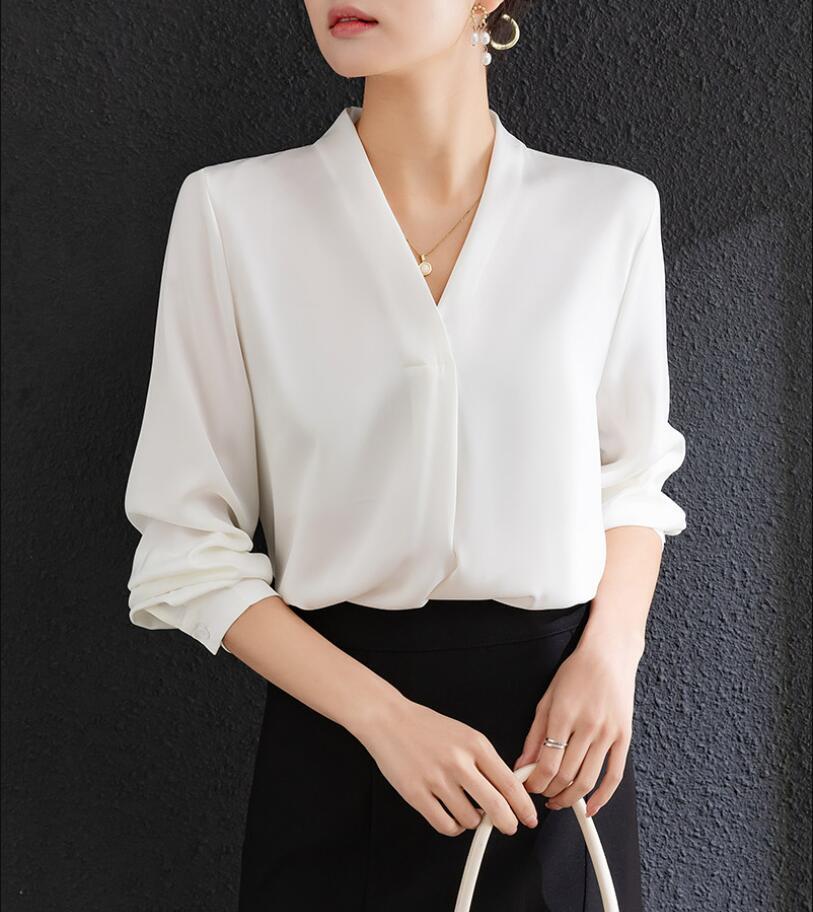 - 秋冬/シャツ ブラウス トップス レディース 長袖 無地 ゆったり きれいめ オシャレ Vネック シャツ 上品 OL 通勤 お出かけ オフィス