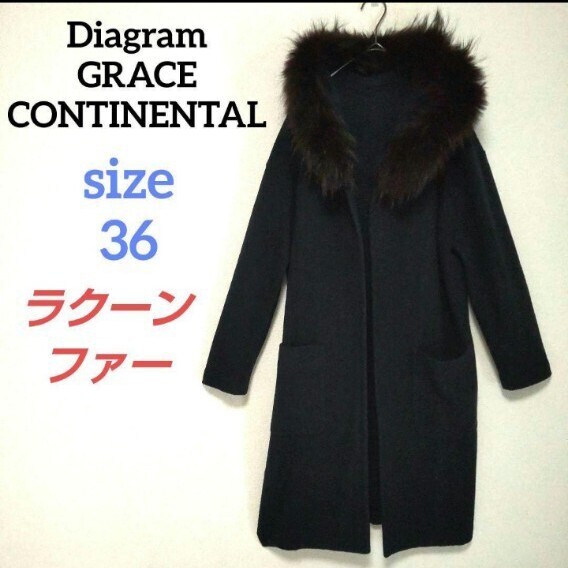 - Diagram GRACE CONTINENTAL ダイアグラムグレースコンチネンタル ラクーンファーコート フード ウール 羽織り ステンカラーコート タヌキ