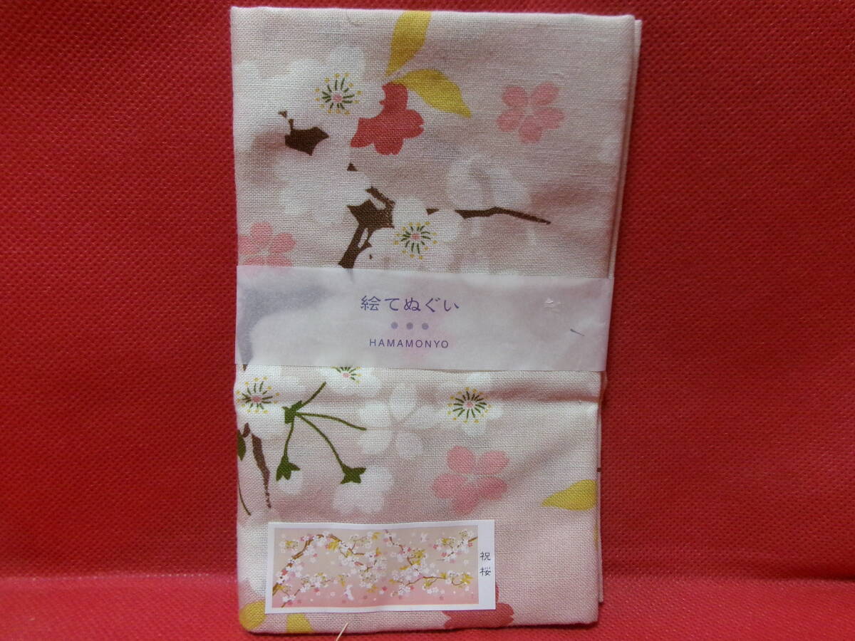- 未使用品 濱文様 手拭 絵てぬぐい 桜柄