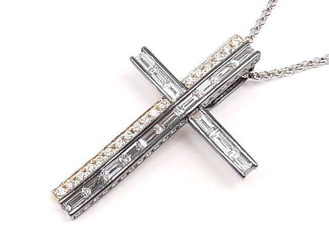 > g19779 750/K18WG D3.00ct ネックレス USED 美品 15.7g 50cm アジャスター付新品チェーン