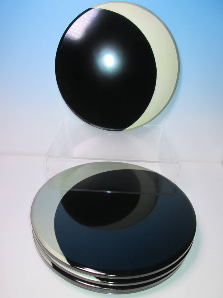 - ☆お料理屋さんの器 ブラック/シルバー 三つ足 三日月 丸膳 五客 箱無 盆/懐石/割烹/日本料理