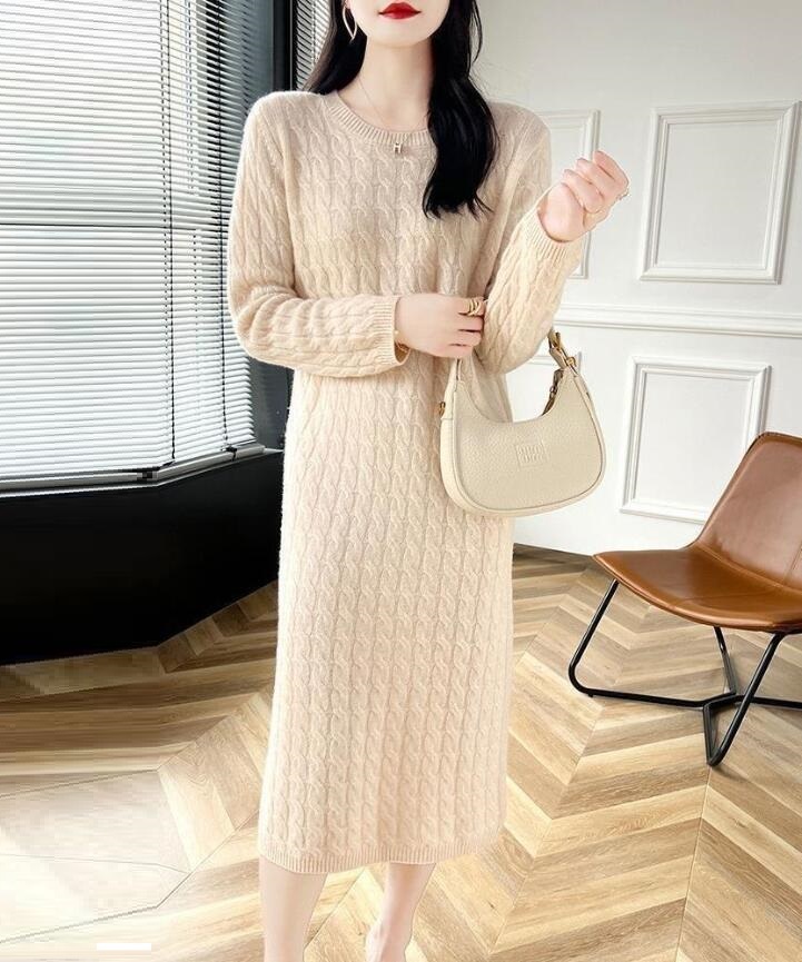 - 秋冬美品*上品 ニットワンピース ミンクカシミヤ混 暖かい 長袖 ニット 膝丈 通勤 オフィス セーター 気質 ひざ丈ワンピース* ベージュ