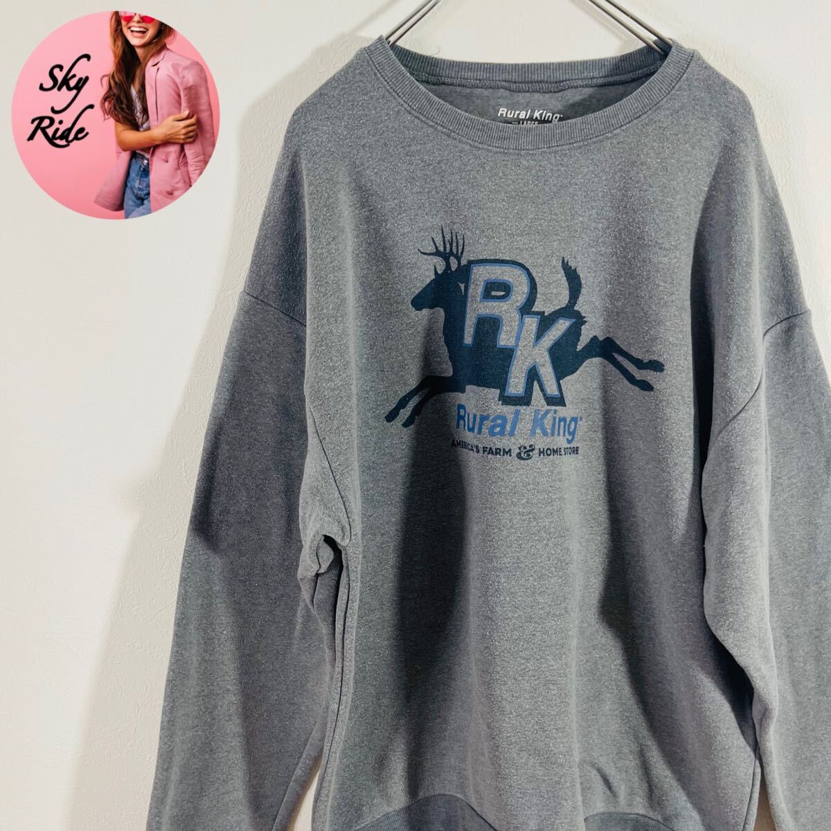 - RuralKing ルーラルキング メンズ ヴィンテージ ビッグプリント プルオーバースウェット トレーナー グレー L 古着 #TB0979