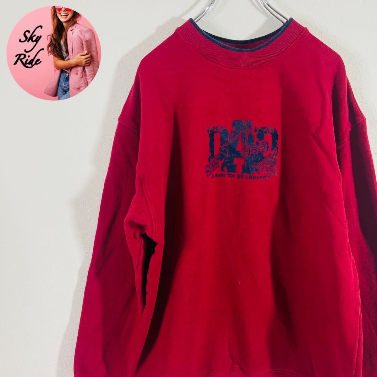 > M&CSPORT M&Cスポーツ メンズ ヴィンテージ DAD ビッグプリント プルオーバースウェット トレーナー レッド XL 古着 #TB0978
