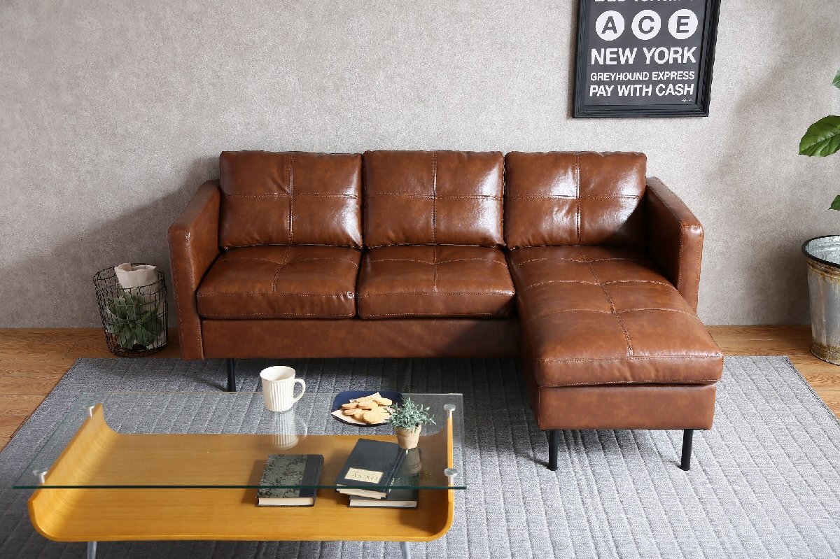 > ソファ ソファー 3人掛 コーナーソファ カウチソファー ローソファー スツール 合成皮革 肘付き オットマン付き