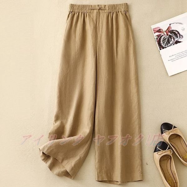 - ☆新品サイズ選択可 ワイドパンツ レディース きれいめ リネン パンツ フレア ワイドパンツ ウエストゴムパンツ オレンジ