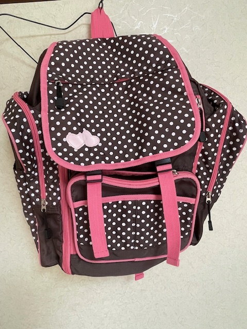 - 200円~大容量ナップサック/リュックサック/バッグ★水玉ハートピンクブラウン未使用品5年前1度使用のみ80サイズ
