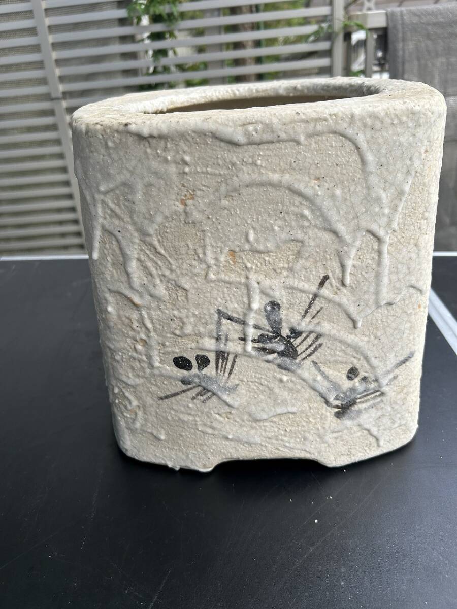 - D 528 古道具 陶器製 角火鉢 めだか 四角火鉢 手あぶり 中古