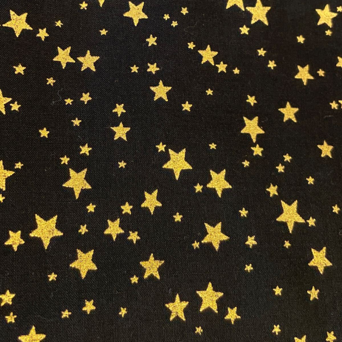 - 【B15】クリスマス 生地はぎれ 星柄 黒地 ブラック リトルスター ゴールドスター 金星 パッチワーク クリスマスキルト