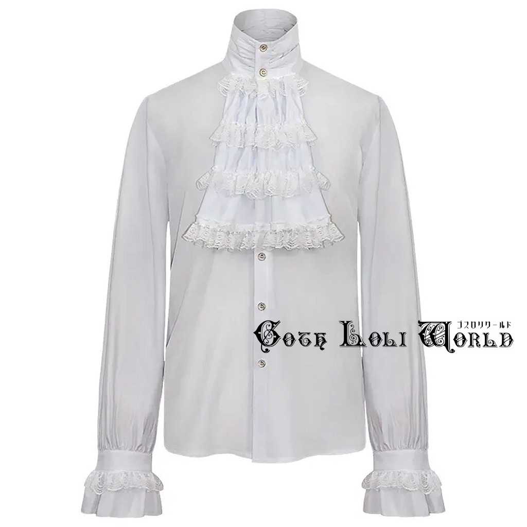 - SJM127CE-S 飾りボタンシャボ付 ブラウス 白色 ホワイト メンズ ゴスロリワールド ゴシック パンク ロック ロリィタ ビジュアル系 V系