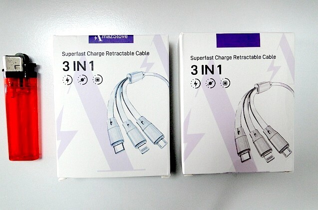 - 【未使用】巻取り式 充電ケーブル2個/タイプC microUSB ライトニング・3in2 3in1【定形外320円/レターパックライト430円】