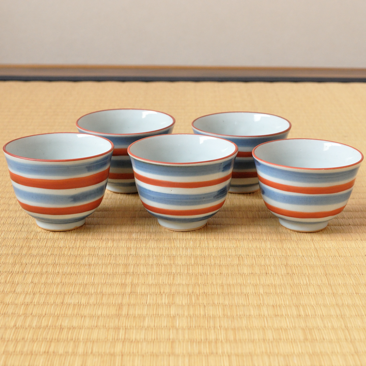 - 草の頭窯 青山禮三 呉須赤絵 汲出碗 五客 ( 美濃焼 五碗 5客 )