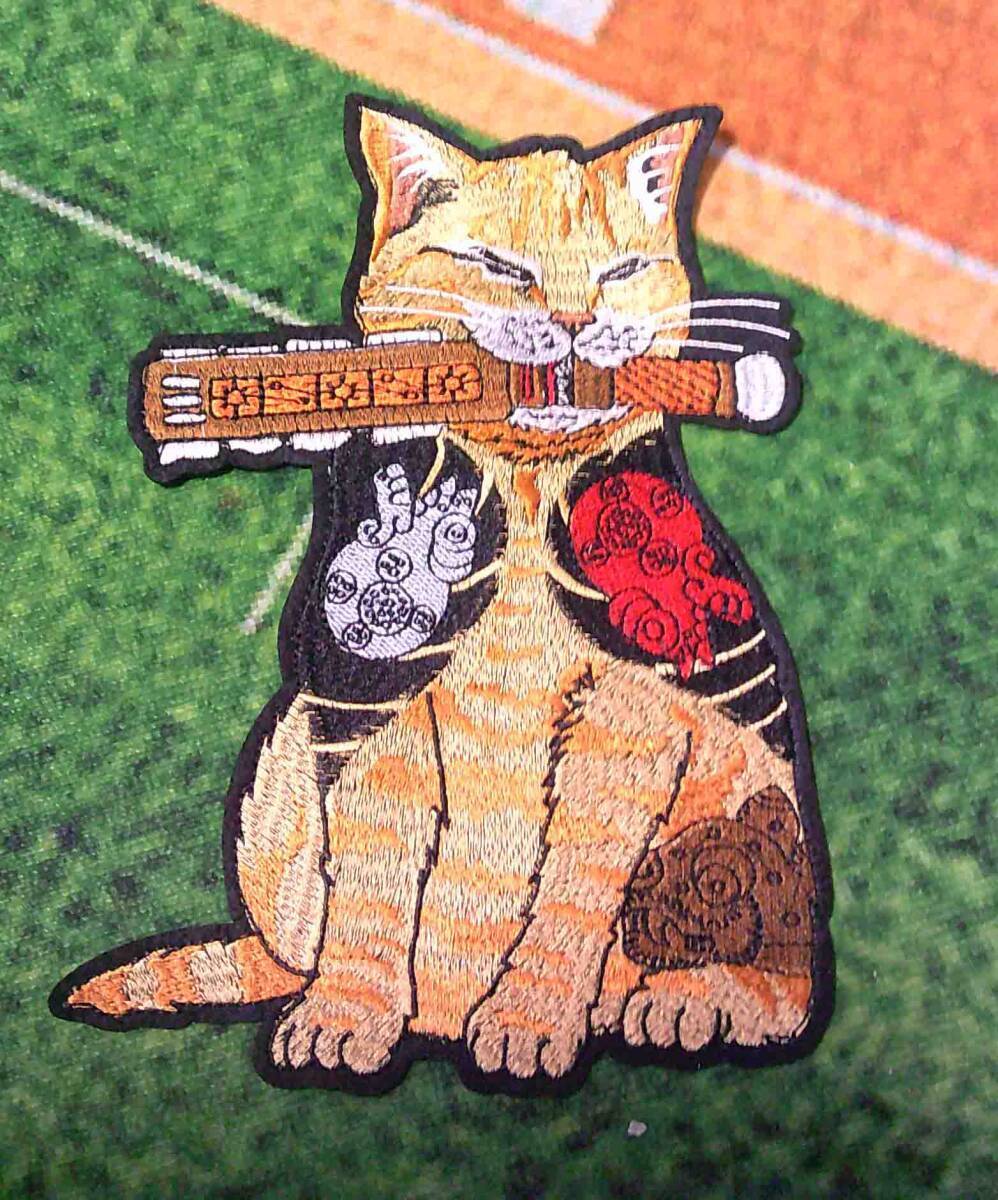 - 特大《武闘派細目短刀猫》《任侠渡世JP細目入墨仁義猫》■猫浮世絵 武闘派■激渋■《 ねこ 刀 心臓》 刺繍ワッペン■洋服・衣類・衣服DIY