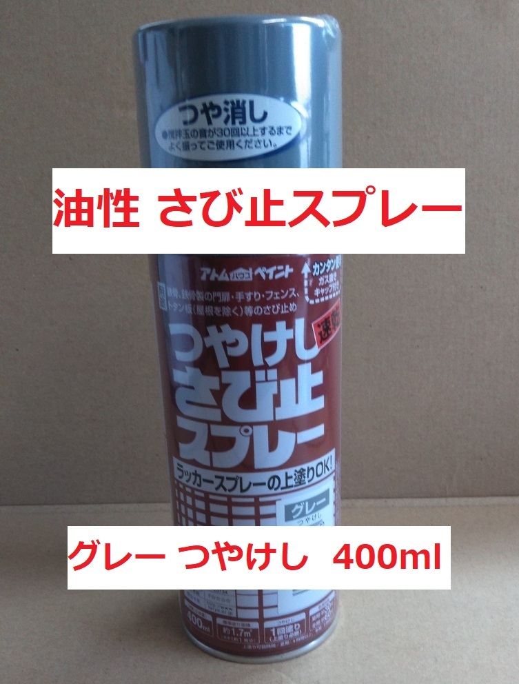 - 油性 さび止めスプレー グレー 400ml つやけし ラッカーの上塗りOK アトムハウスペイント