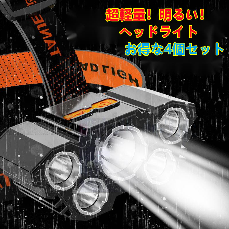 - D517K-4個セットLT21 明るい5LEDヘッドライト 充電式 LED ヘッドランプ 軽量 釣り 登山 アウトドア キャンプ