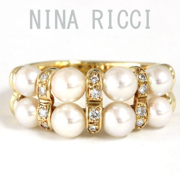 > 【ニナリッチ】NINA RICCI あこや 真珠 ダイヤモンド パール アコヤ 18金 K18 YG イエローゴールド リング 指輪