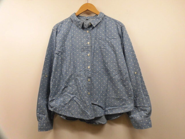 > UNIQLO ユニクロ ドット柄 シャツ 水玉 長袖 トップス ライトブルー 青 水色 Mサイズ