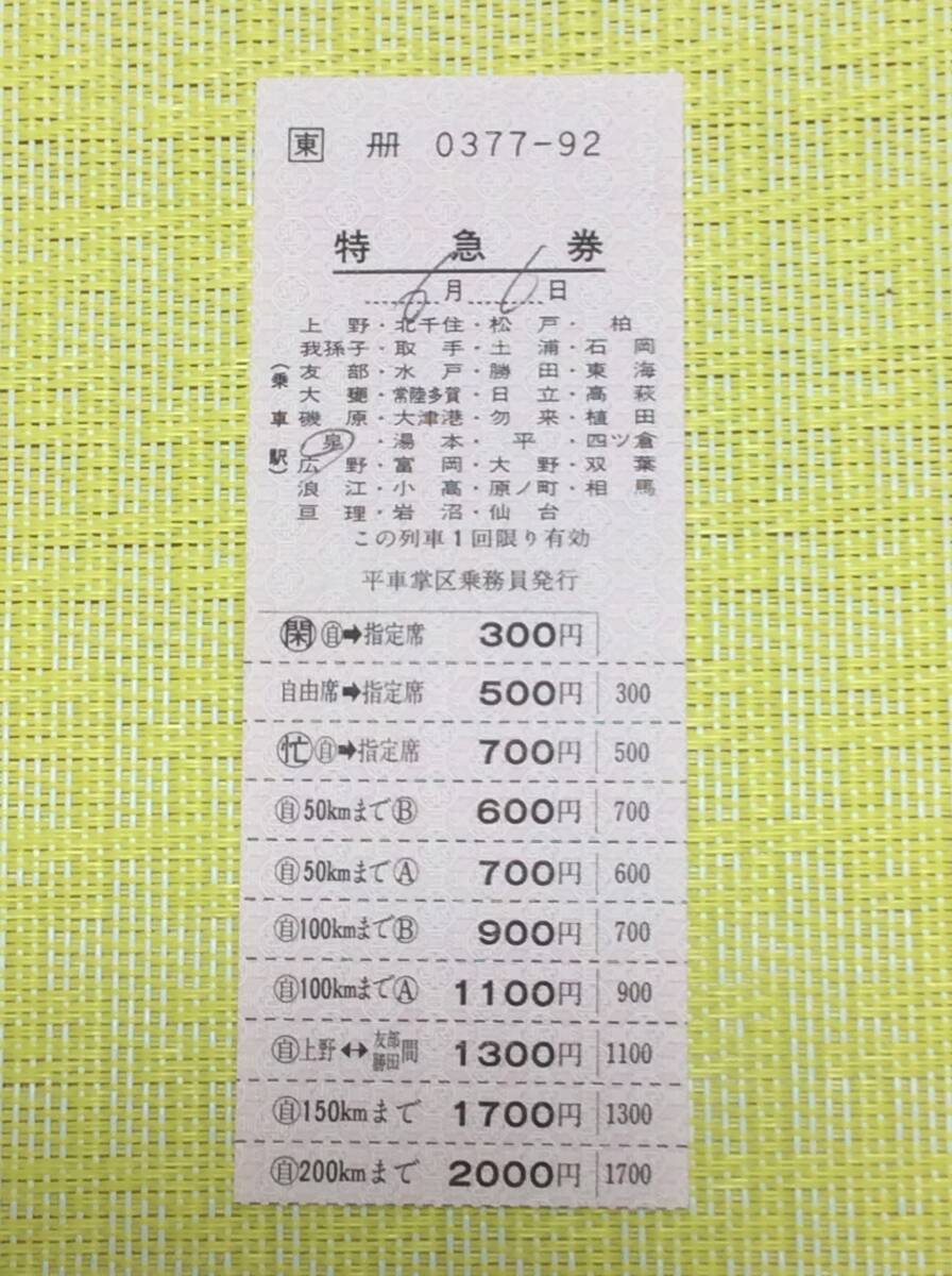 - JR東 車内発行特急券 200㎞まで 平車掌区乗務員発行 昭和63年6月6日 検札鋏印入