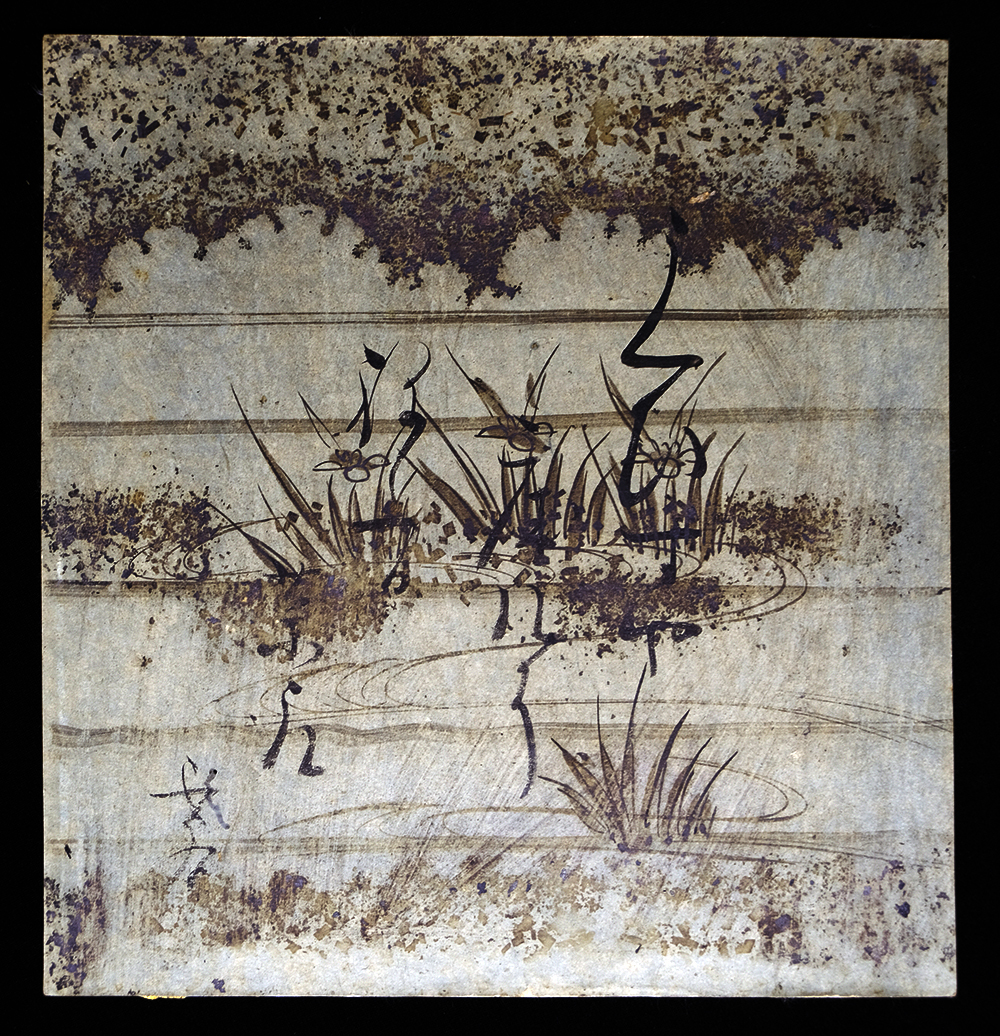 - <E24299>【真作】横井也有 肉筆発句色紙「うくひすや…」江戸時代中期の俳人「鶉衣」著者