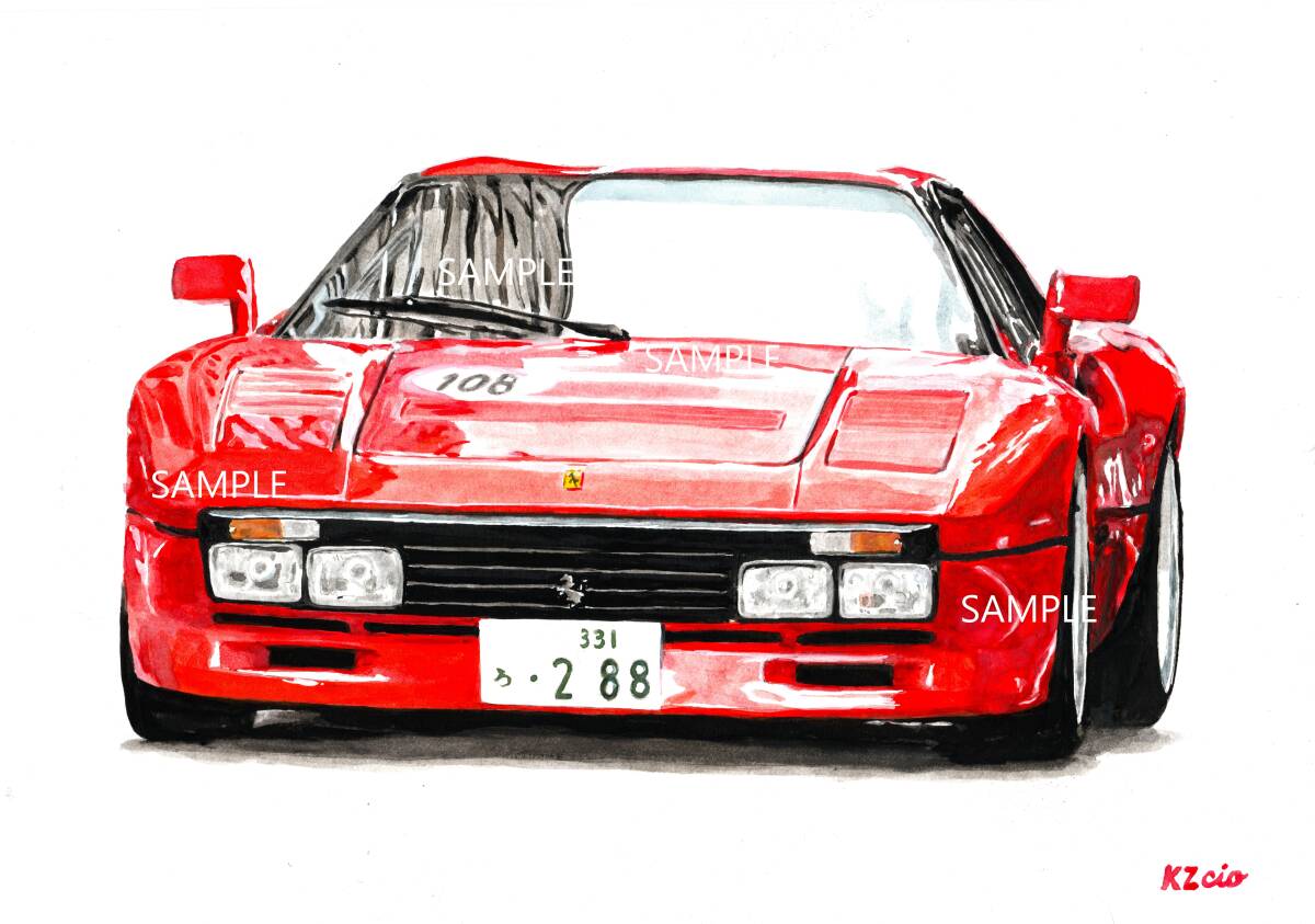 - A4プリントです。 フェラーリ 288GTO 水彩画 旧車イラスト