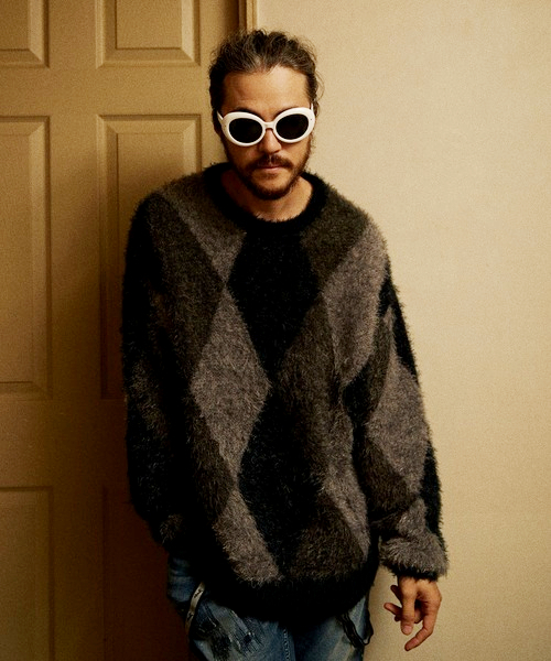 - ●美品 NUMBER NINE ナンバーナイン アーガイルニット モヘア風 復刻モデル GRY サイズ3