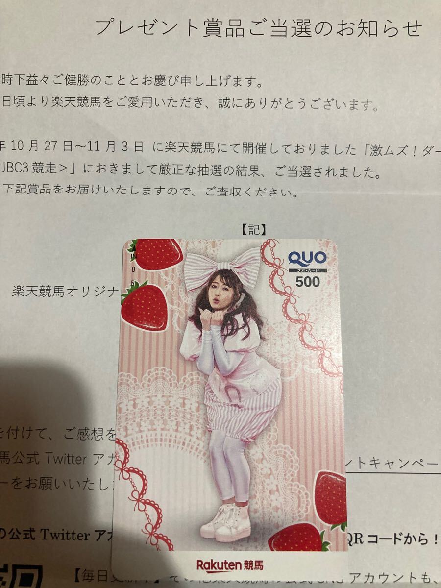 - 抽プレ当選 津田麻莉奈 クオカード QUOカード 未使用 当選通知付き 懸賞品 競馬