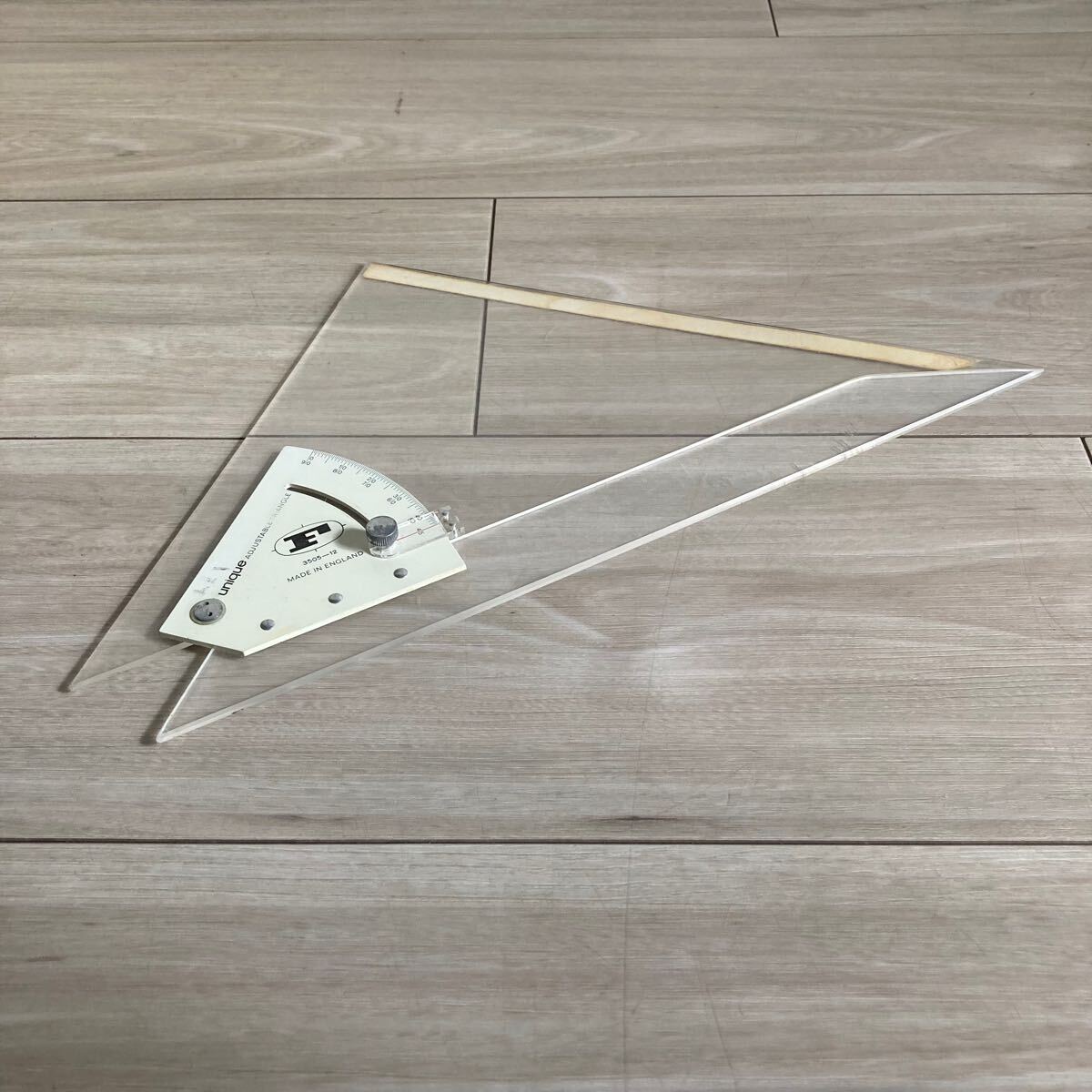 - イギリス製ビンテージ UNIQUE 勾配三角定規 25センチ 製図