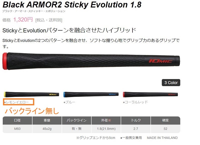 - イオミック グリップ Black ARMOR2 Sticky Evolution 1.8 バックライン無し(新品、未使用)(即納)