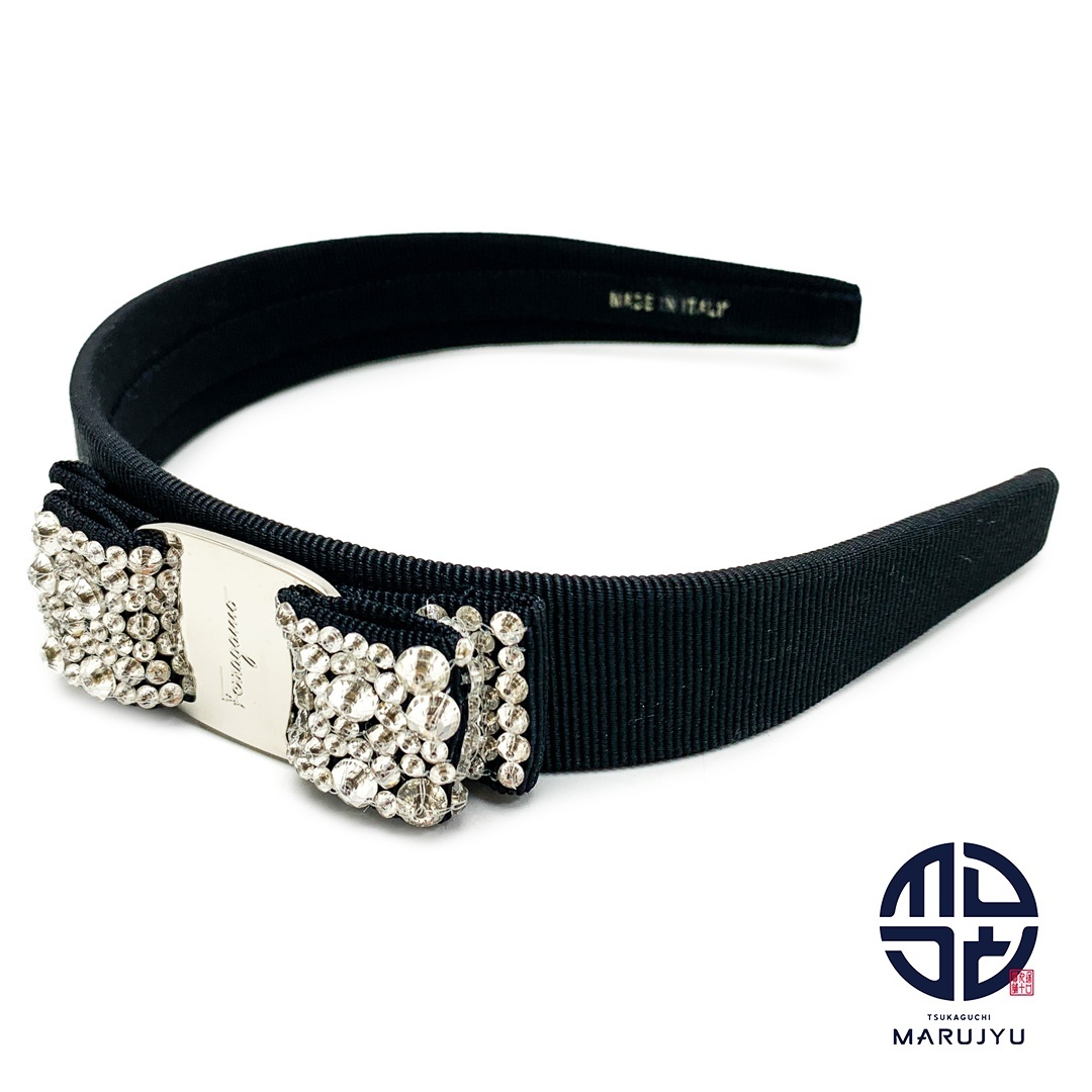 - FERRAGAMO SalvatoreFerragamo フェラガモ ヴァラリボン クリスタル 黒 ブラック カチューシャ ヘアアクセサリー 小物 ブランド