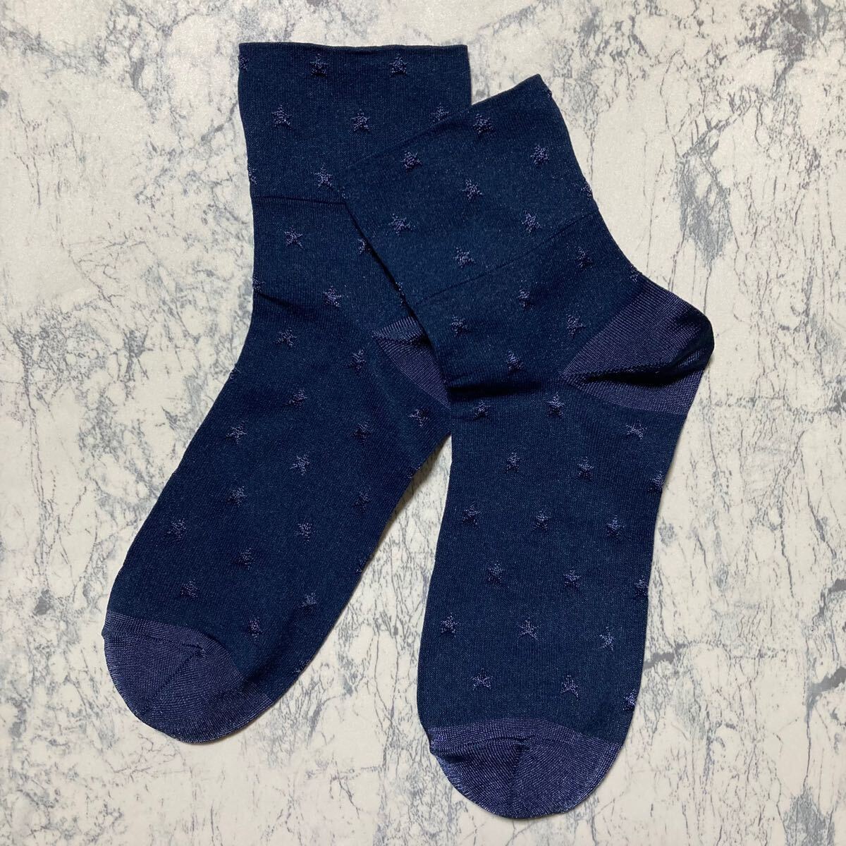 - 新品未使用 光沢糸 スター 星柄 ネイビー 紺色 アンクル丈 レディースソックス